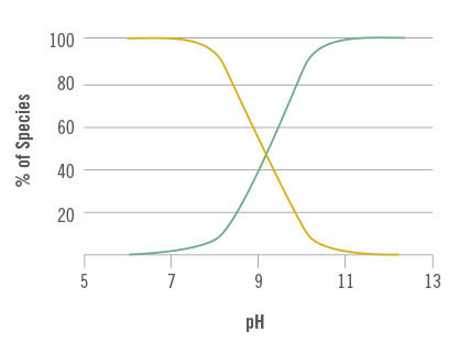 Figure 2. Equilibrium between ammonium (NH4+) and ammonia (NH3) at different soil pH levels.